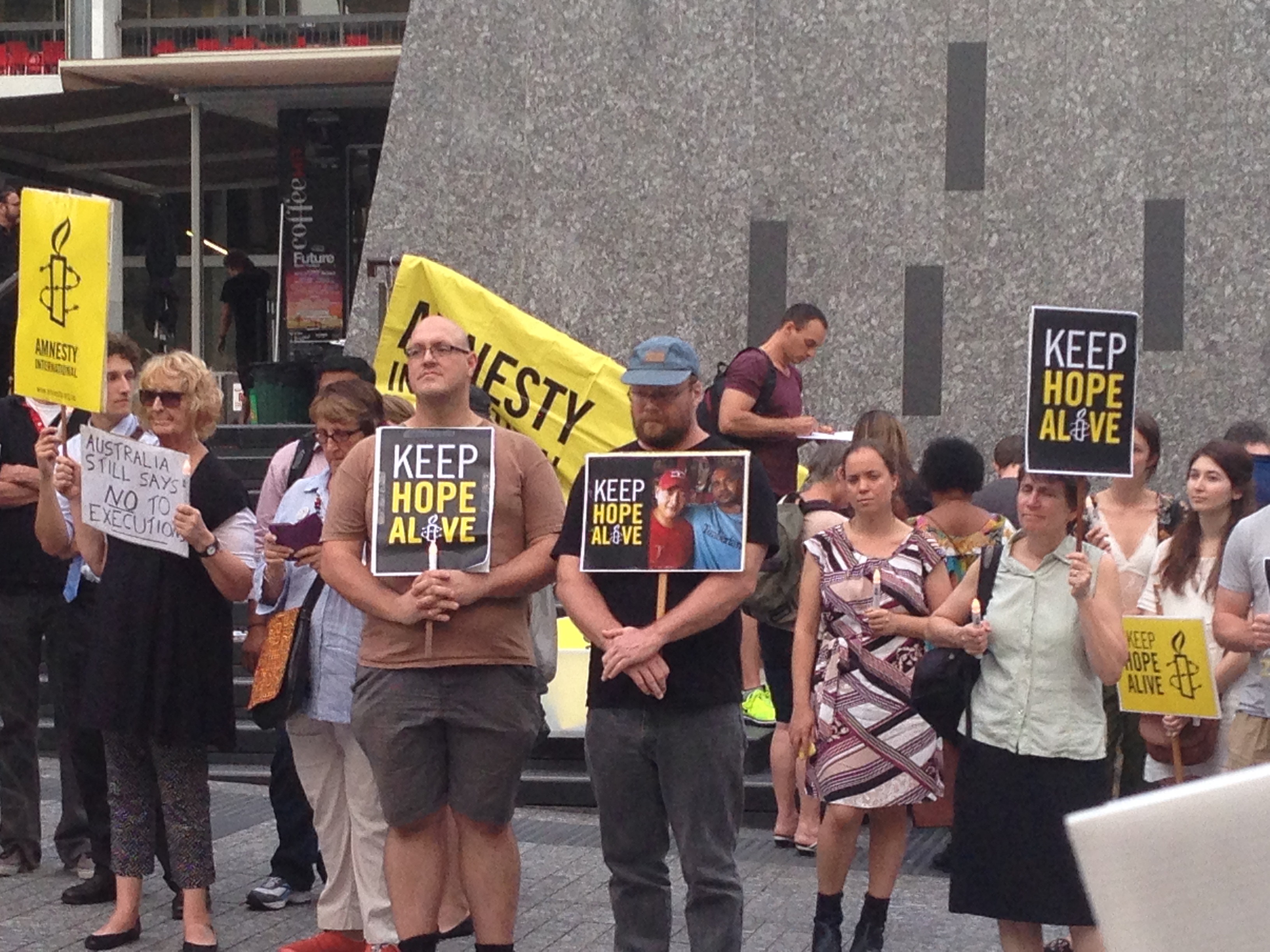 AACP joined with Amnesty to hold a vigil for Death Row inmates in Indonesia. The latest group of prisoners facing executions include two young Australians, Andrew Chan and Myuran Sukumaran, and reports indicate that their executions are planned within a month.