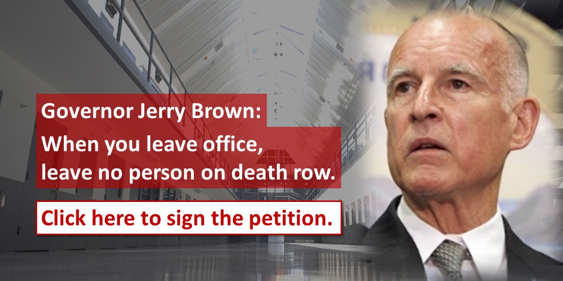 Click here to sign our petition asking Gov. Brown to intervene and grant clemency to as many people on death row as possible: those who could face execution, those who were kids at the time they were sentenced to death, and everyone else sentenced by this arbitrary, unjust, and racist system.
